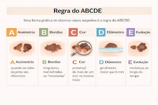 Uma forma prática de observar sinais suspeitos é a regra do ABCDE: